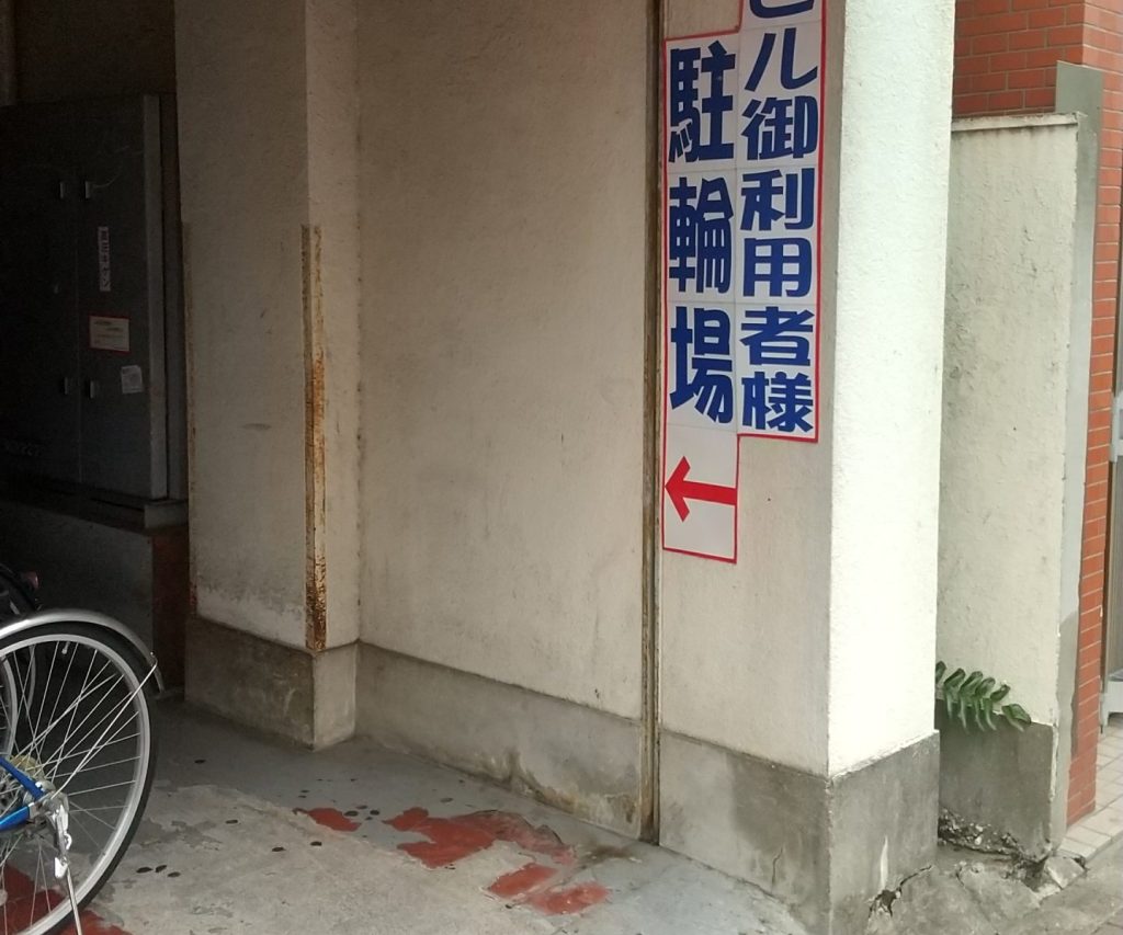 自転車でお越しの場合は、ビルの右端にある駐輪場の奥側をご利用ください。