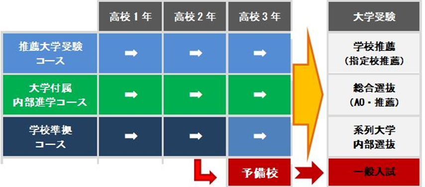 目的で大別したコースはありますが、高校生の指導指導内容は、学校授業進度が前提となり、お子さまによって個々に異なります